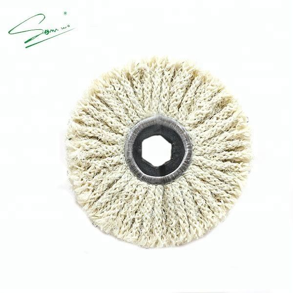 It is woven with eight strands of cut African hemp yarn and used with manual, semi-automatic or full-automatic machine to grind the deep image of tableware, sink, lock, etc. The utility model has the advantages of excellent elasticity, deep concave position, high cutting force and self cooling in operation.