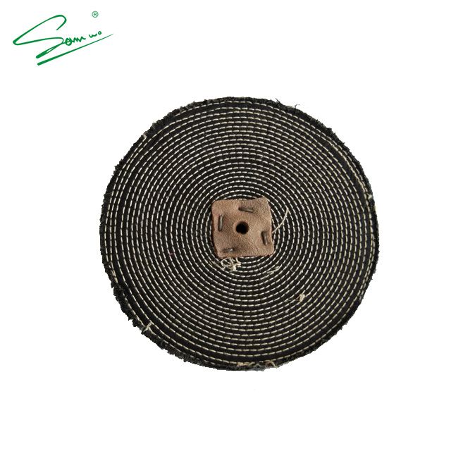 Formed by intercrossing layers of cotton cloth, sewed spirally with cotton thread, these buffs are suitable for polishing of any accessible flat surface, as a set-up wheel with glue and abrasive emery.